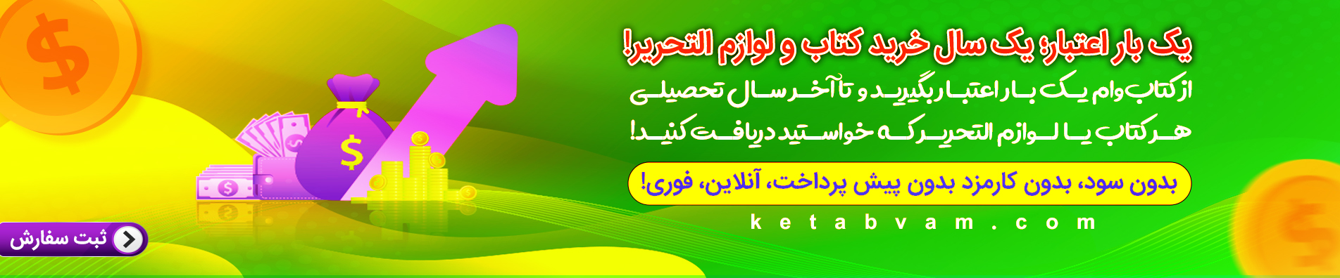 کتابهای دانشگاهی، آموزشی و کمک آموزشی، علمی، ادبی و هنری خود را سفارش دهید و با اقساط 6، 9 و 12 ماهه پرداخت کنید!